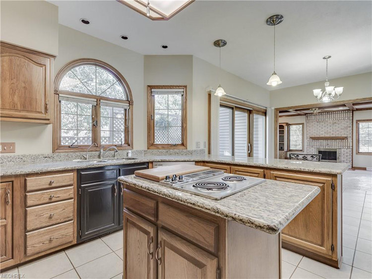 It's difficult to avoid falling in love with this two-story French Colonial in North Canton. Just look at all of those elegant details! We're particularly smitten with the kitchen, which features granite surfaces, copper accents, ceramic tile flooring, a center island and a four-burner counter.