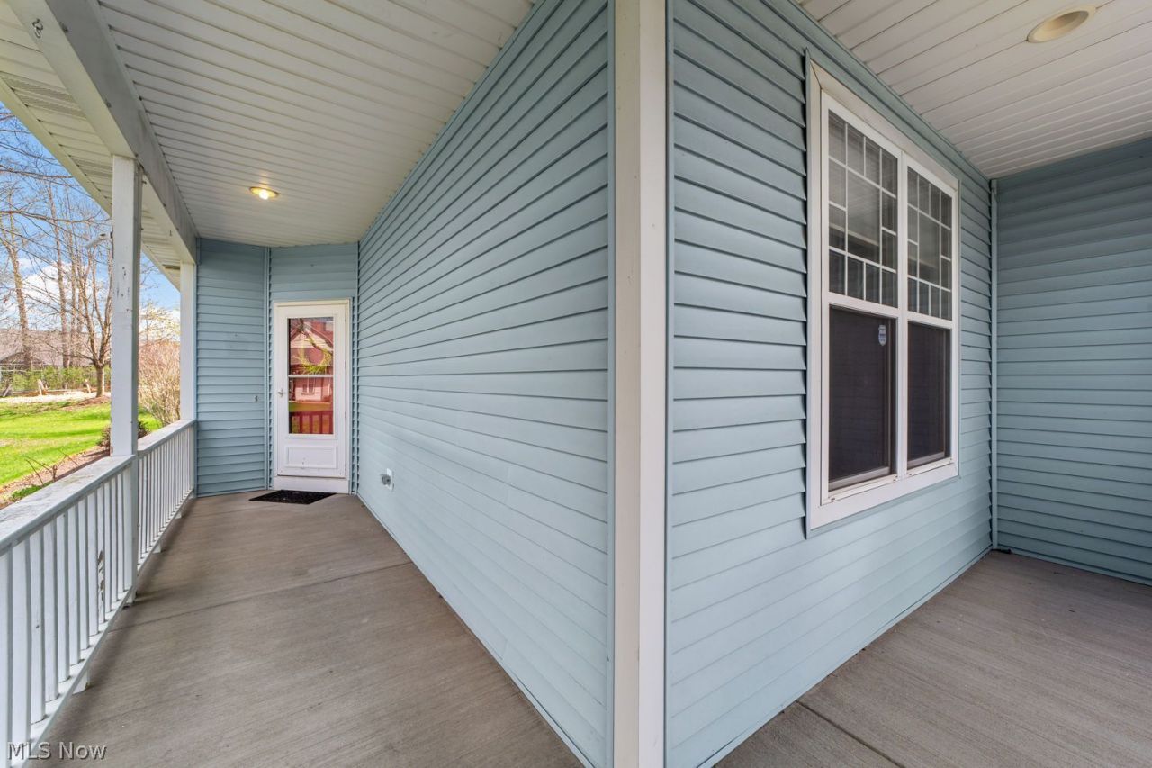 Step into comfort and easy living with this wonderful, well-maintained one-floor free-standing home located in the highly sought-after 55+ active adult community of Avenbury Lake. A spacious covered wrap-around front porch warmly welcomes you, perfect for relaxing and enjoying the peaceful surroundings. Inside, the home features a bright and inviting foyer with ceramic tile flooring that opens into a large living room filled with natural light. The formal dining room, ideal for entertaining, and the living room both offer lots of light and space. The expansive eat-in kitchen is a highlight, boasting abundant cabinetry, generous counter space, a center island, and stainless steel appliances that stay with the home. A large dining area with direct access to the outdoor patio creates a seamless flow for indoor and outdoor living. The oversized master suite includes a walk-in closet and a master bath complete with a soaking tub and a walk-in shower. A second spacious bedroom with carpeting, a full hall bathroom with a tub/shower combination, and a convenient laundry room featuring a utility tub and storage closet complete the main level. The full unfinished basement offers endless possibilities for customization and provides an abundance of storage space, along with an additional full bathroom featuring a walk-in shower. Recent updates include fresh paint throughout the entire home and basement, as well as a newer roof, making this home truly move-in ready.
