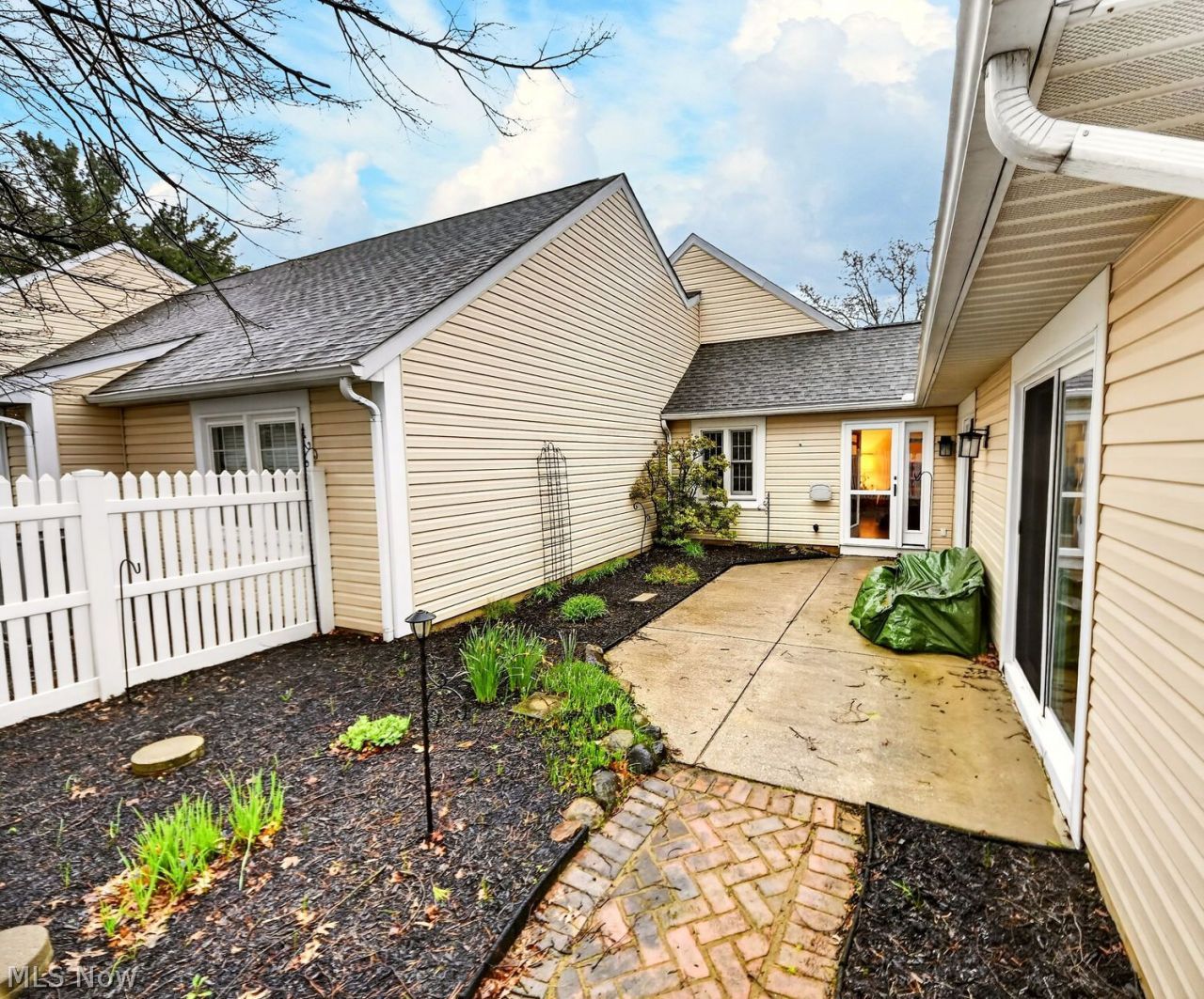 End-unit ranch with lofted 2nd-floor bonus space. Two first-floor bedrooms, including a spacious primary suite with a walk-in closet and private patio access; a second bedroom adjacent to a second full bath. Engineered hardwood floors throughout most rooms. The great room features a vaulted ceiling, a bay window, a gas fireplace, and a sliding door to a fenced patio. The dining area also has a sliding door to the patio. A unique spiral stair leads to a large lofted multipurpose room and a huge storage room. Eat-in galley kitchen with garage access. First-floor laundry and utility room with abundant storage; excellent storage throughout. Low-maintenance community offering a pool and a clubhouse for private events and neighborhood gatherings. Nicely painted 2-car attached garage with natural stone flooring, a newer garage keypad, a gas line for an outdoor grill, and gas available for the oven. Lovely front walkway to back patio. Roof replaced in 2025; some newer Andersen windows plus the primary bedroom, and front doors in 202425. Don't miss this one!
